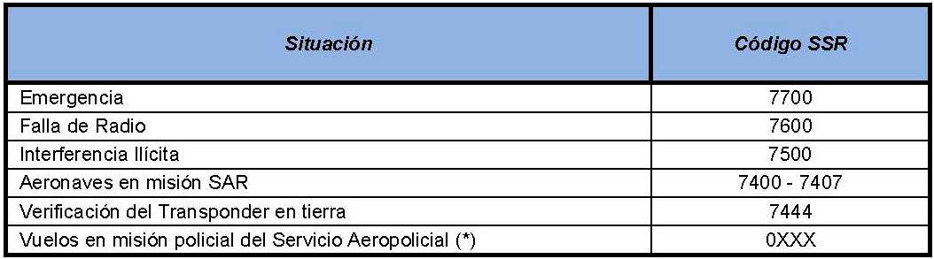 - En caso de que una aeronave se encuentre en una situación de emergencia, el piloto utilizará el código 7700; si está siendo objeto de interferencia ilícita activará su respondedor en el Código 7500, sin embargo, si el piloto ha recibido instrucciones previas del control tránsito aéreo para mantener un código específico, el piloto mantendrá el código asignado.