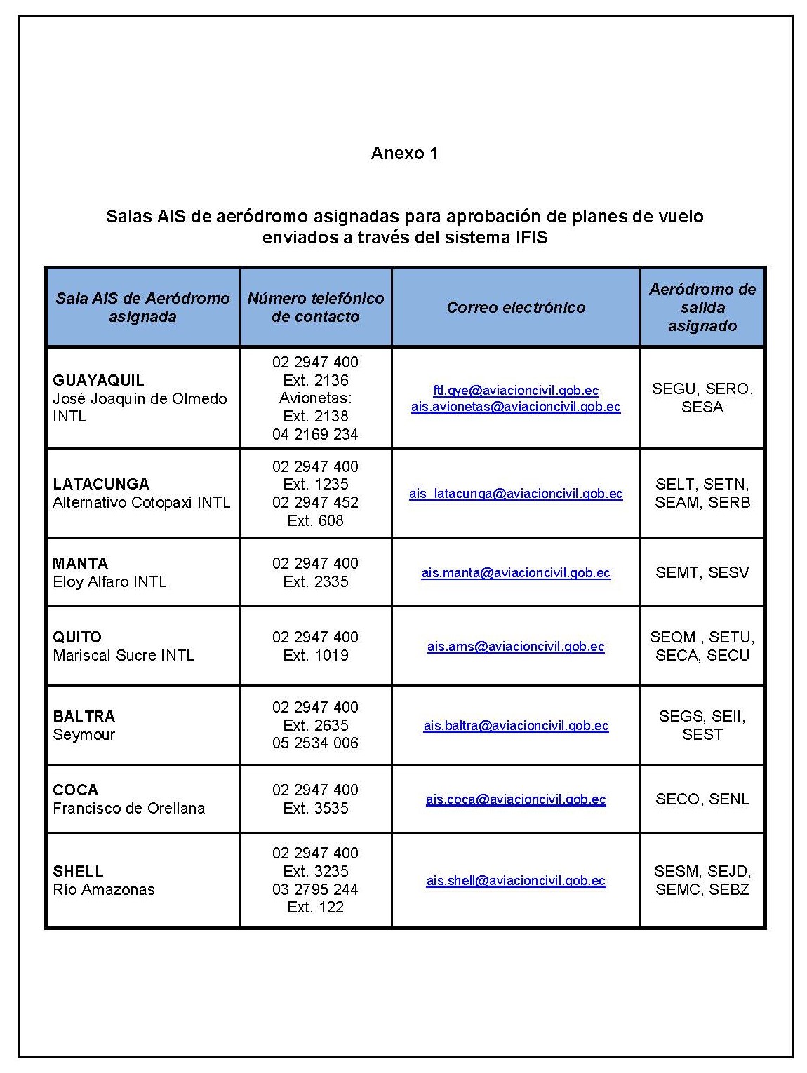 - b) Para los aeródromos donde no se disponga de salas AIS de aeródromo, se lo realizará de acuerdo al área de responsabilidad asignada del Anexo 1.