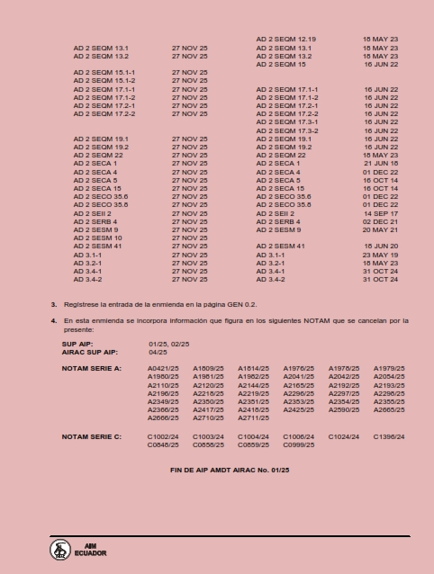GEN 0.5 Lista de enmiendas incorporadas a mano a la AIP