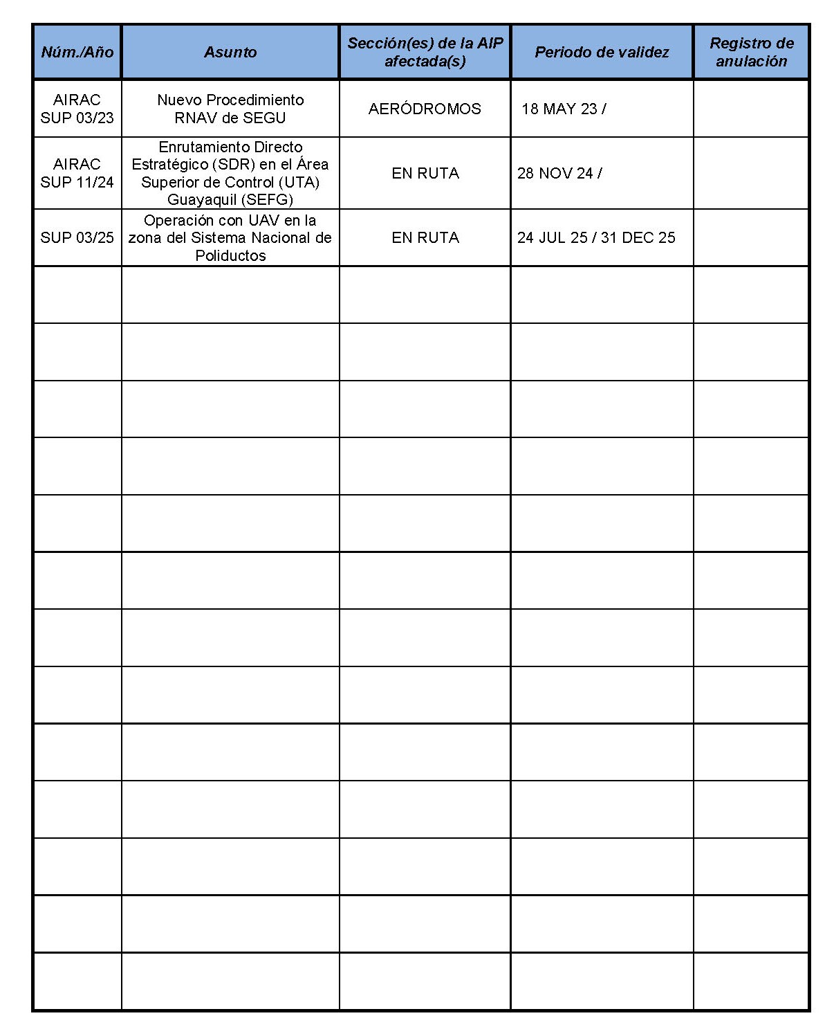 GEN 0.3 Registro de Suplementos de la AIP