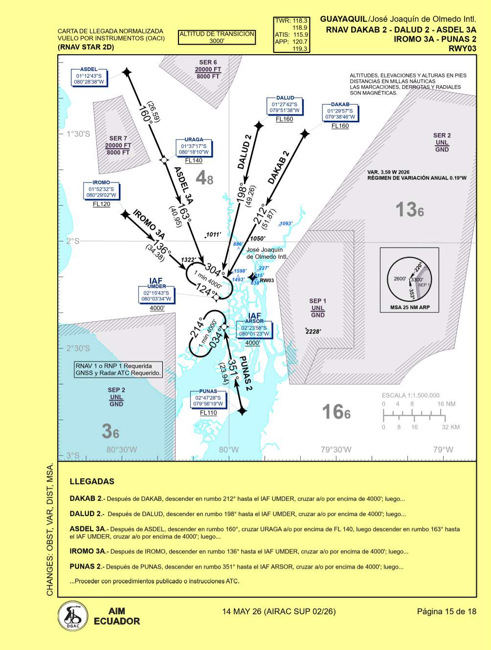SEGU - Procedimientos de llegada normalizada, RNAV salida normalizada, RNAV llegada normalizada, y RNAV aproximación por instrumentos.